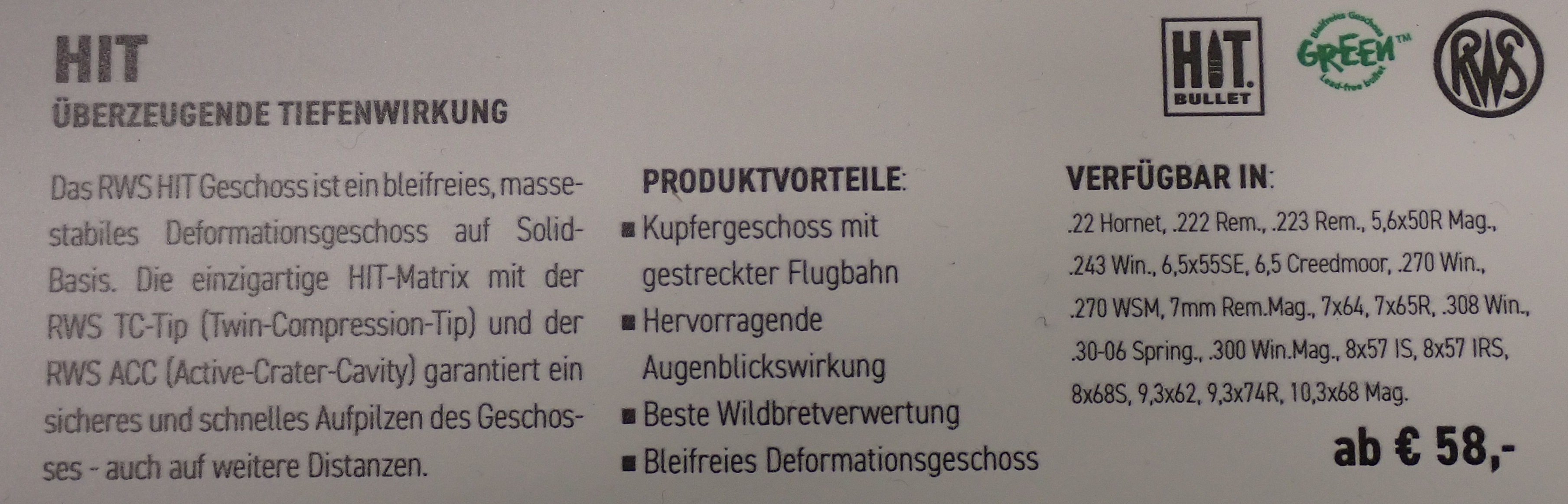Auch das Angebot an Pistolen überzeugt, insbesondere die Glock-Modelle: Hier stehen acht Varianten zur Begutachtung bereit, mit Preisspannen um die 1000 Euro. Eine Version für Schalldämpfer ist ebenfalls zu sehen; optisch ein wenig ungewöhnlich, da der Lauf funktional aus dem Gehäuse herausragt. Passende Munition gibt es in allen erdenklichen Kalibern – von .22 Hornet bis 10.3×68 Mag.